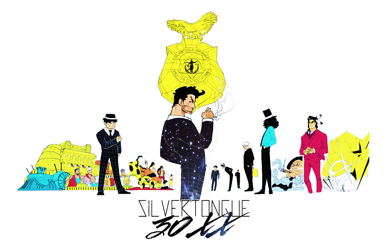 Silvertongue 30XX: Space-Time District Attorney follows the story of Silvertongue Hernandez and a rat-pack of time-travelling lawyers, specialised in revisiting (or more like crashing), so-called "Trials of the Century" throughout space-time. Silvertongue, a selfish, dark, ego-centric, womanizer and addict, will encounter the most bizarre of adventures in search of Reality 2; a parallel multi-verse he and his motley crew are carefully crafting, which will possibly mean salvation for us all. Or, will it?